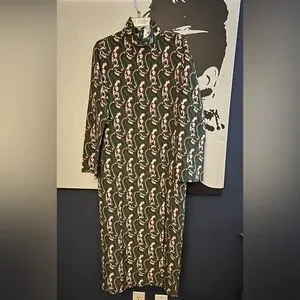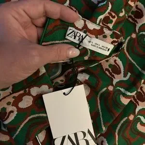 ZARA Green Paisley A-Line Dress With Mock Turtleneck- Sexy Side Slit- Size L NWT
