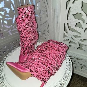 Custom Order "THEA" Pink Sequin Velvet & Satin Ankle Boots