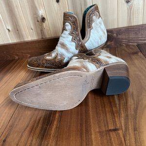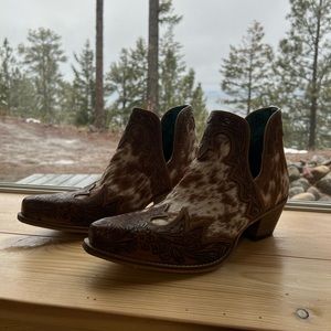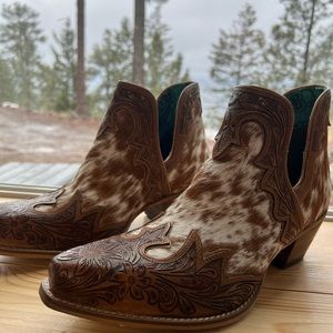 💯Hand Tooled Floral Leather Genuine Hide-on Women Bootie Boot Boho Western Shoe