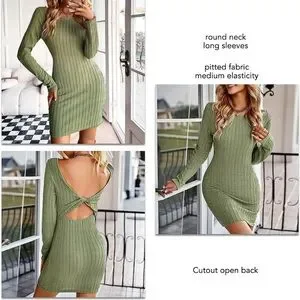 HALARA Green Backless Bodycon Ribbed women’s Long Sleeve Mini Dress Small Knit
