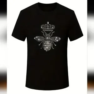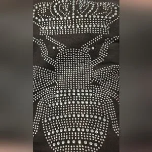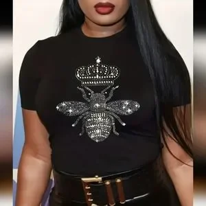 *SOLD* QUEEN BEE Crystal Beaded Black Fitted Tee Crown Bee Sz XXL (14)