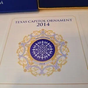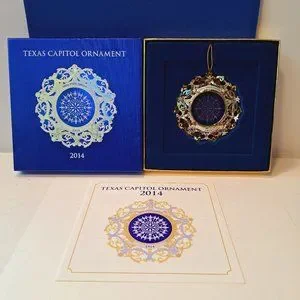 Texas State Capitol 2014 Christmas Ornament in Original Box, Blue Oculus Window.