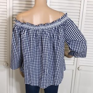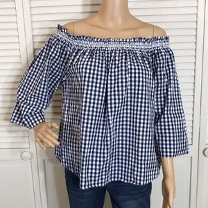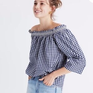 Madewell Smocked Gingham Off-the-Shoulder Top XL