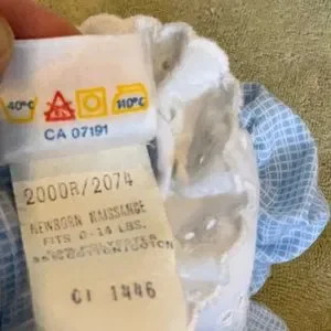 Adorable Vintage Gingham and Eyelet Baby dress that is so great for summer as it is very light and airy. Lovely Strawberry Embroidered and eyelet Appliqué design on the front of skirt with a pretty light blue bow. Gingham Bow on the front under the collar. Very light stain under the Gingham bow. Other than that, this dress is in excellent condition.