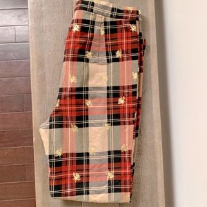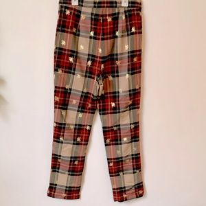 Plaid high waist skinny pants with gold bumble bee accents. Excellent condition