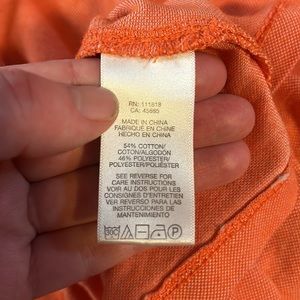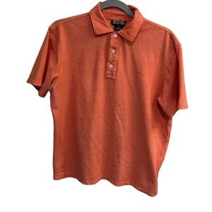 Orangey pink mens polo only worn a handful of times. Tiny black spot by the label. Good pre loved condition.