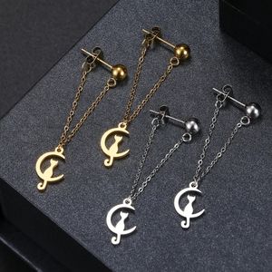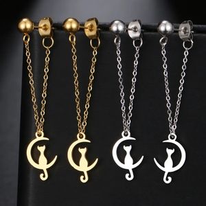 Delicate Moon Cat Earrings