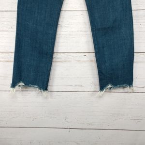 Premium quality cotton denim jeans with stylish frayed detailing at the hems. Belt loops, Button fly closure, Five-pocket style.