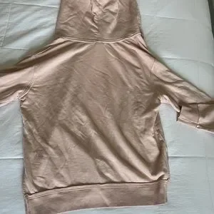 This is from H&M, size medium. It’s a bit worn and has a few small spots (see pictures) but otherwise is great condition! The color doesn’t really show up well in the pictures but it is a soft light pink. It is light weight but has fleece on the inside to keep you warm 🤍