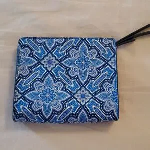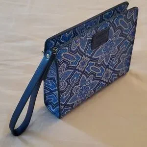 Reposhing this item I purchased from @moxysquib. Loved it, but did not use. EUC, Blue mosiac design, PU, travel/makeup bag with black cloth interior. Top zip closure with carry strap. Stored in smoke/pet free environment.