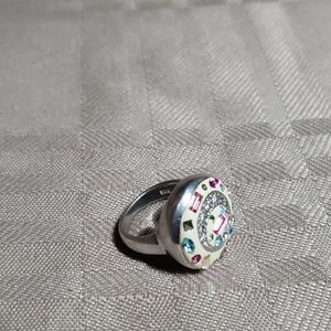 Size 7. Various colors of swarovski crystals embedded. Stamped (see pix). Great conversation piece. One missing crystal...see pic.