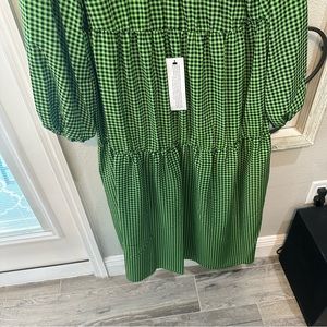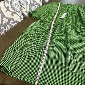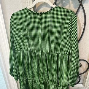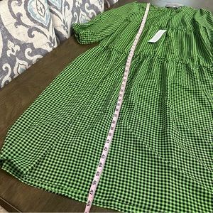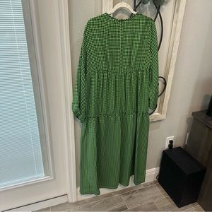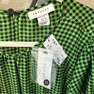 NWT Topshop Gingham Smocked Long Sleeve Maternity Midi Dress Green and Black Size 4
