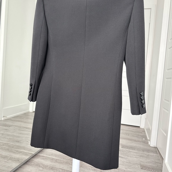 With the long sleeve tailored blazer, Saint Laurent continues to push for unbeatable elegance. There are two interior pockets and two faux pockets on the outside. A combination of silk and wool ensure the blazer is crafted from premium materials, whilst padded shoulders give the blazer a vintage power suit feel. This blazer goes perfectly with the Saint Laurent mini and both Tom Ford heels in this closet, make your bundle today! Comes in a Saint Laurent suit bag. Never worn and Measures Shoulders 13”underarm 15” Waist 13” Length 23” Sleeves 15 1/2”