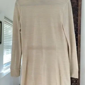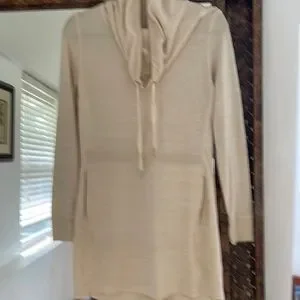 Really comfy long sleeve dress. Short. Feels like your favorite sweat shirt but better. Draw string neck. Rib cuffs.Ribbing at mid section. 96% polyester 4% spandex. Zip diagonal pockets at hips. 18” pit to pit 33” length. No rips or stains. Smoke and pet free home.
