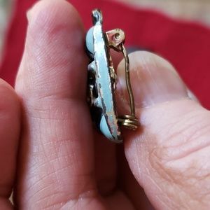 and Bkue enamel, set in a silver tone setting.