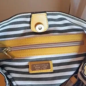 🇮🇹 Absolutely Gorgeous A.BELLUCCI, 100% 🇮🇹 Italy Leather. Seems to LAST forever. Beautiful Soft Yellow, with Outstanding Design Excellent Used Condition Inside and Out, with minor wear on Tag, and bottom feet only. See Photos