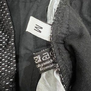 Very unique mesh joggers are lined with a silver fabric.