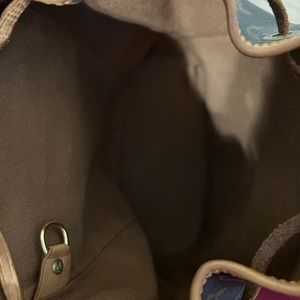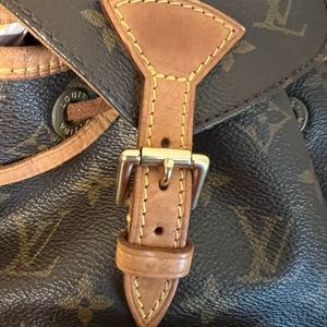 Montsouris Backpack PM. Canvas in excellent condition. Interior is clean, no smell. Vachetta has nice patina, trim has no cracks and straps are strong.