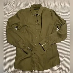 Givenchy Men’s Olive Green Dress Shirt with Metal Details