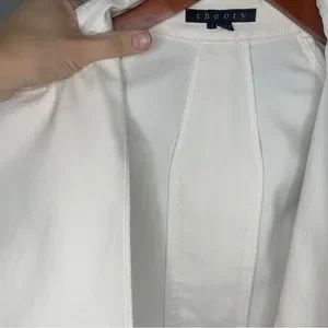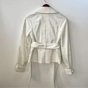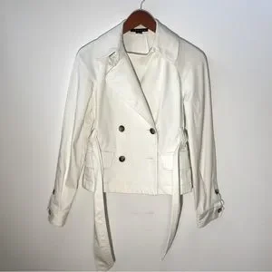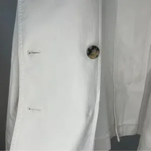 Gorgeous white jacket with tortoiseshell buttons, one is missing, but the inside button could easily be moved to the front and replaced with something generic. In like-new preowned condition otherwise.