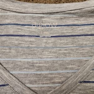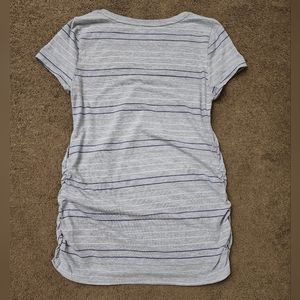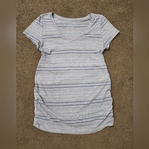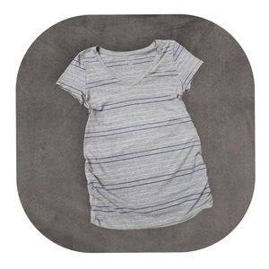 Grey/Blue Striped Ruched Side Maternity Tee, Women's Large (Maternity)