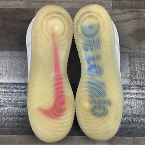 • White upper, multi-color Nike "Swoosh", translucent midsole and translucent sole.
