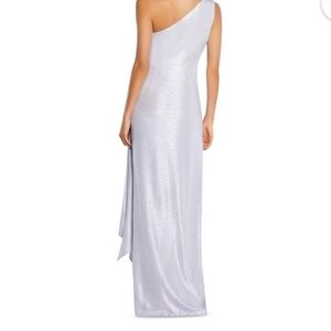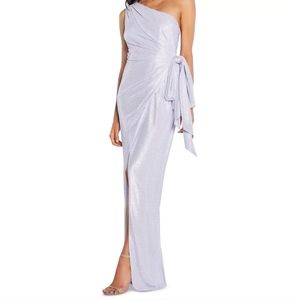 One Shoulder lavender wedding guest gown. One shoulder Bridesmaids dress