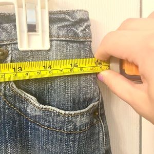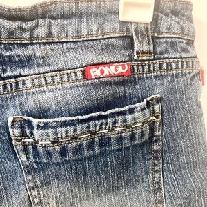 Distressed denim shorts from Bongo. Dark wash featuring lighter areas. Comfortable and great for summer. Good condition.