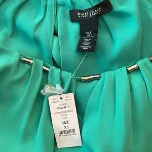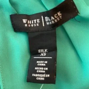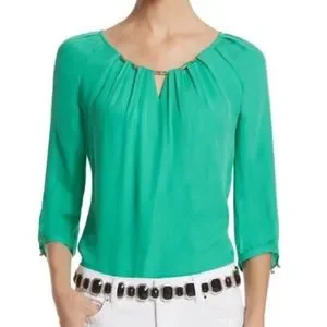 WHBM Blouse Features GORGEOUS JULIP Green Color ➖ SILK ➖ Necklaced with Faceted Silvertone Beads ➖ Soft Pleats & Keyholes Create Fluid Lines with Supple Drape ➖ 3/4” Sleeves with Pleats & Button Closure at Cuff ➖ Fully Lined ➖ Relaxed Blouson Fit ➖ Armpit to Armpit 19” … Waist 17 1/4” … Length 24 1/2” … All Measurements Taken Laid Flat