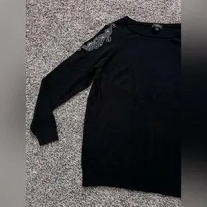 Susan Graver. Women’s long sleeve sweater size large. Rayon and nylon material. Studded detail and cut out detail at sleeves. Gently used but in excellent condition. Purchase with confidence.