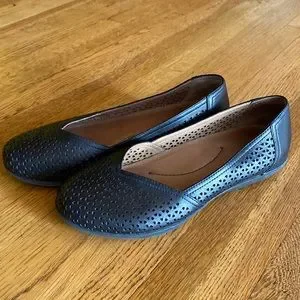 These Dansko Neely Cut-Out Flats In black are a 36, fitting like a 6.5. I loved the style but they were a half size too big for me. Worn a few times. I adore all my Dansko shoes as they keep my feet and back happy all day!