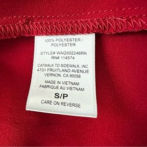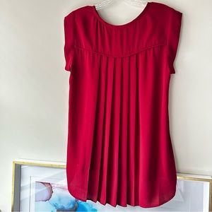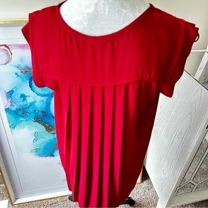 PLEIONE Top High Low flowy Short Sleeve Nordstrom Blouse Red Rucked Size SP