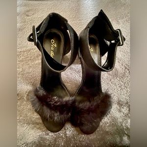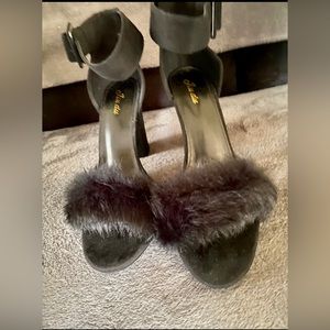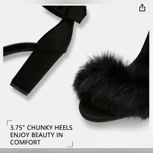 Faux Fur Open Toe Ankle Strap Heels Fashion Wedding Party 3.75” block heel