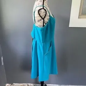 Market & Spruce Teal spaghetti strap v-neck midi dress with scallop hem pockets