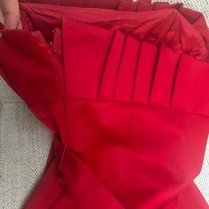 This size 6 dress is so beautiful and intelligently designed it instantly made me feel glamorous like Marilyn Monroe. It has a side zipper and waist tie. I bought it for a formal occasion so it has only been WORN ONCE and is in excellent condition. I would actually keep this dress but decided to pass it along to another girl who will hopefully love and enjoy feeling very special dressed up in it. There are a few small dark marks on the lower part of the skirt which probably would come out if dry cleaned. If you wore this dress you would never notice the marks; I never noticed them until I decided to take photos of it and sell it. Also there is a small sign of wear under the armpit area. The photos showing the wear marks are the last few pictures.