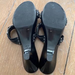 New Antonio Melani Leather Kitten Heel Silver Chain Detail Sandals