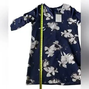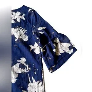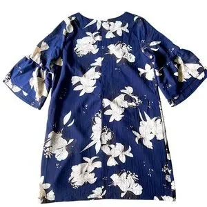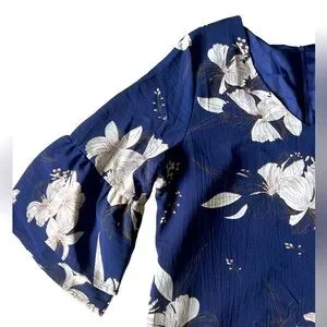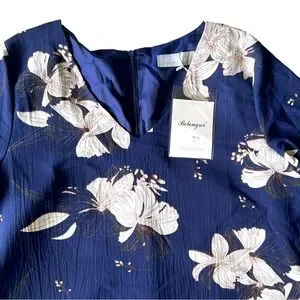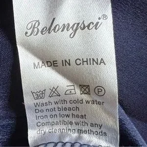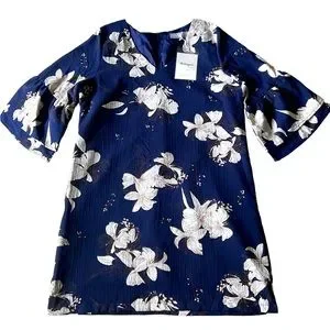 NWT BELONGSCI Womens V-Neck Bell Sleeve Shift Dress Mini Dress Navy Size Large