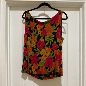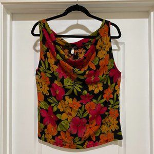 Sleeveless Draped Cowl Neck Top 1X Black with Bright Flowers