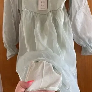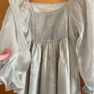 Womens Puff Sleeve Square Neck Puffy Dress Babydoll Mesh Mini Dress