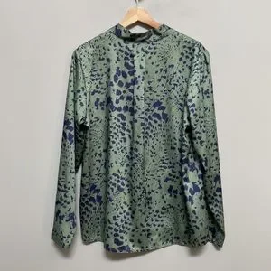 ❗️SOLD❗️Aritzia Babaton Green/Blue Power Long Sleeve Satin Feel Blouse Size L