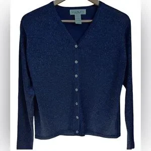 NWOT Kevo 80%Silk 20%Lurex Blue Sparkle Cardigan Sweater Size Small
