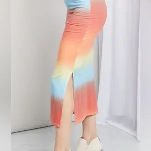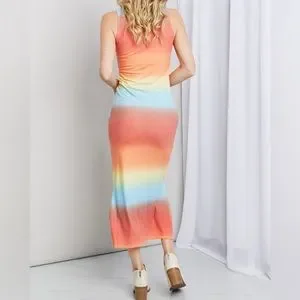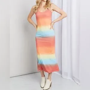 SALE!! Zenana Rainbow Gradient Sleeveless Side Slit Bodycon Maxi Tank Dress