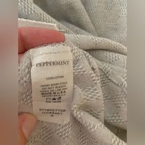 Like new! Lightweight gray cotton dress by Peppermint. Purchased from a great local boutique and only worn once. Elastic waist with drawstring detail, rounded neckline, subtly textured pattern. Falls above knee. No pockets in this one. Perfect like new condition. Size small. Fits true to size.