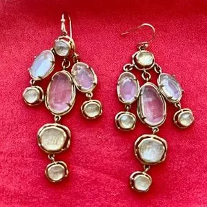 Dangling gold tone earrings with clear crystals