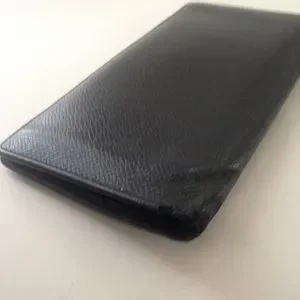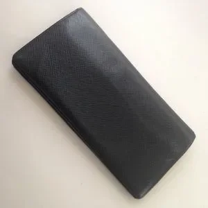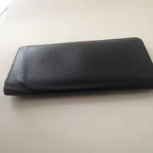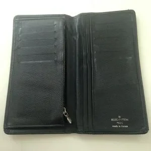 Louis Vuitton, Black Taiga Leather Zip Long Wallet