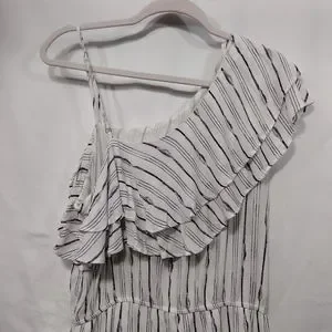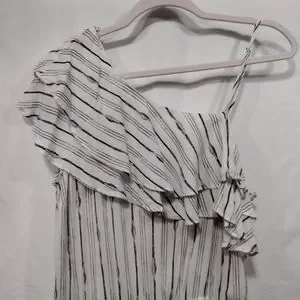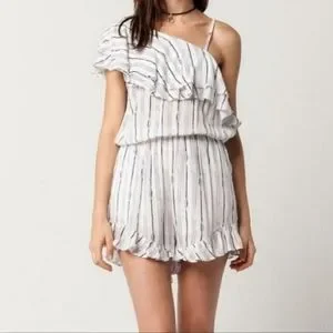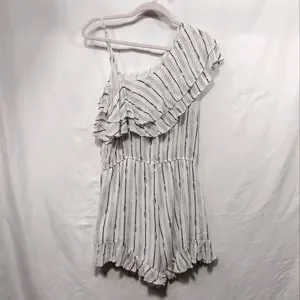 NWT Blu Pepper Romper Women's L White Blue Strips Ruffle Asymmetrical Beach Boho