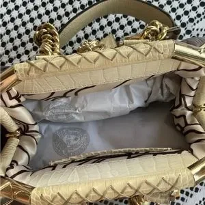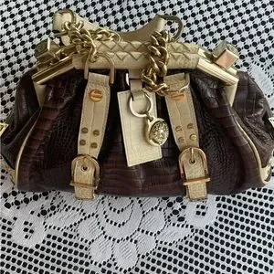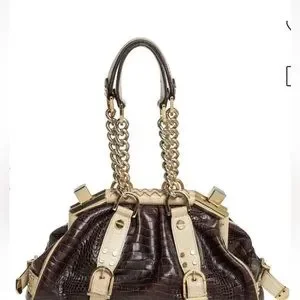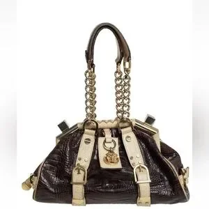 Vintage Versace Brown/Cream Croc EmbossedLeather Madonna Satchel NWT