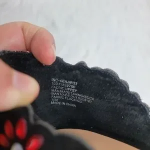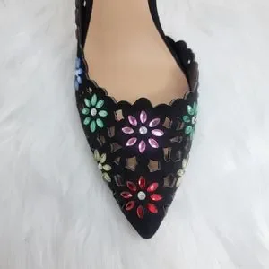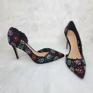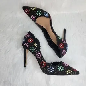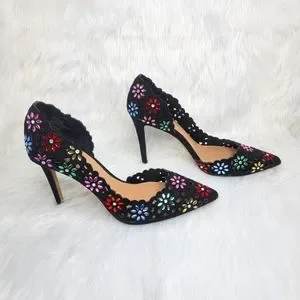 INC International Concepts black pumps pointed toe multi colored floral heels.