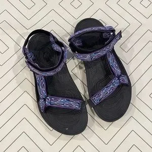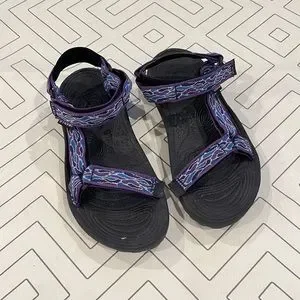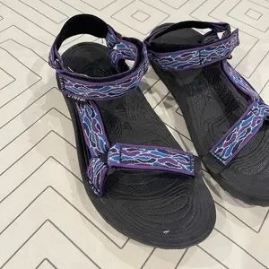 Size 10. Thick and sturdy soles with velcro straps. Purple blue and white design on straps. Used in good condition. Easy to clean material. Great for hiking, lake, river and outdoor activities. No trades. S2-113