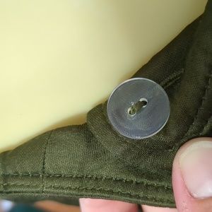 Features: solid dark forest green, silky satiny soft, wrap style with button and 2 snap closure, pockets, approx just above the knee length, waist was taken in with a few stitches - can be removed